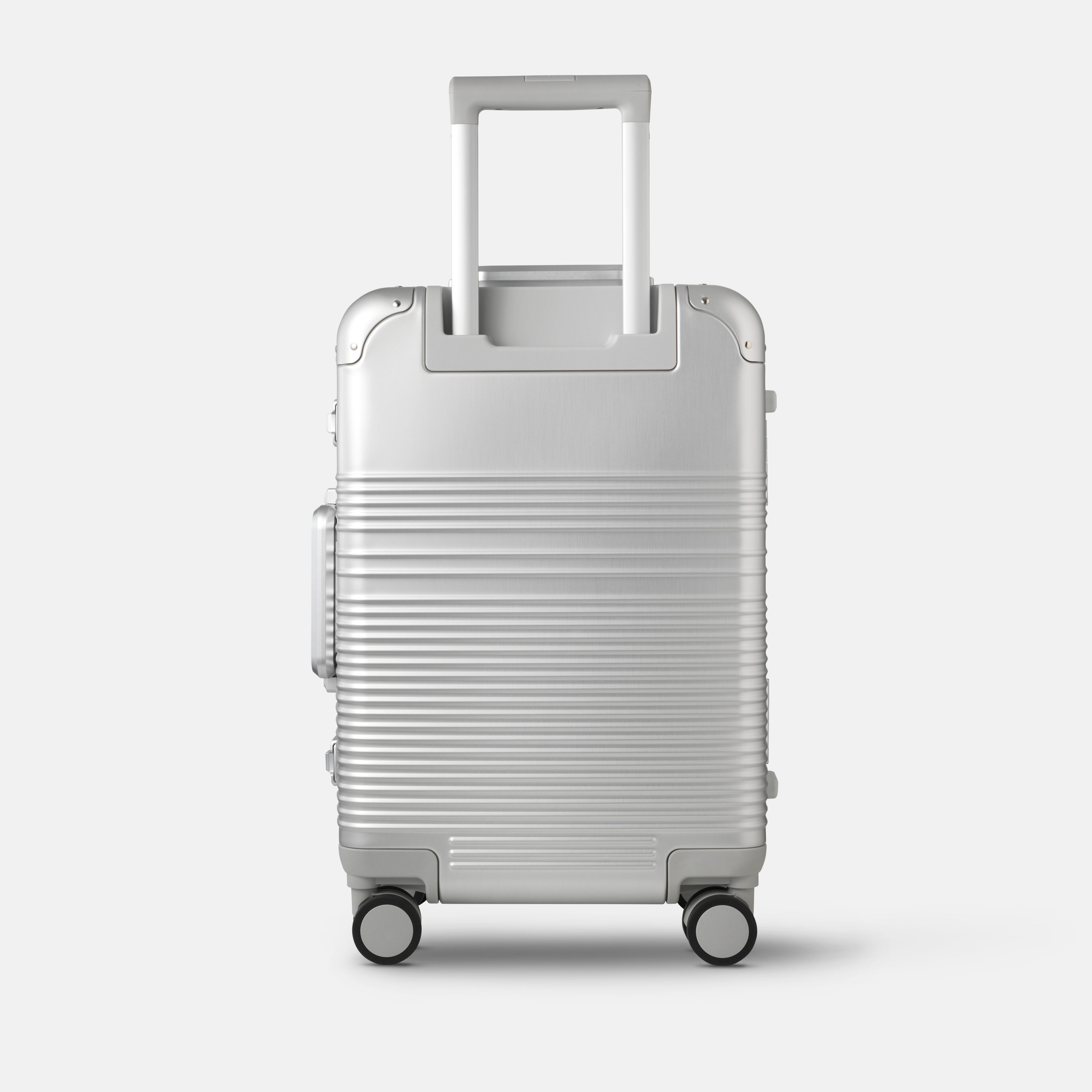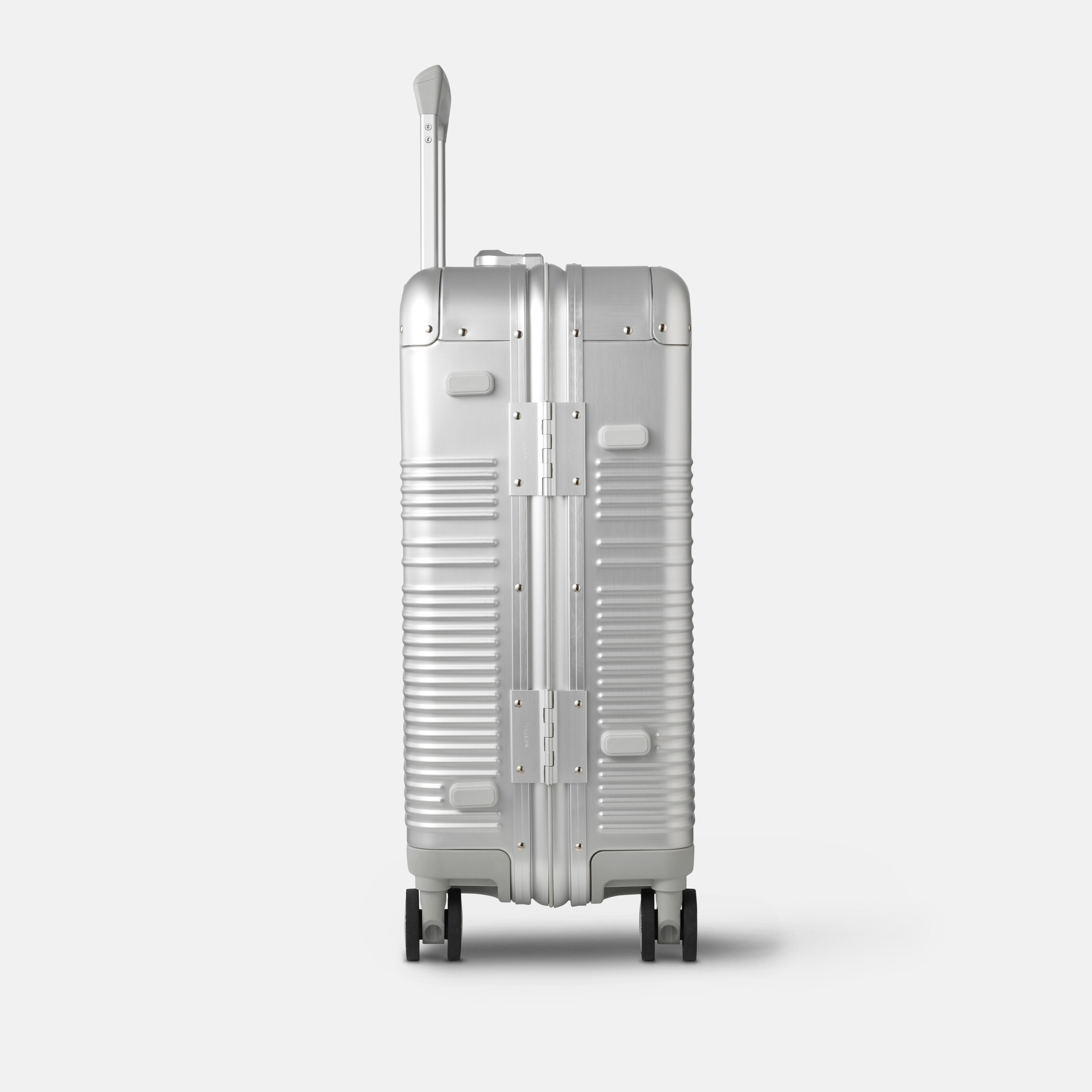 Meet the top-tier Aluminium suitcase. A statement of pure craftsmanship. Engineered from our high-grade aluminium, it balances exceptional strength with a refined, luxurious appearance. It… Read more features our next-generation ball-bearing Silent Wheels that… Read more offer a smooth glide and reduce noise by over 20%. Slow-return, retractable handles on both sides ensure maximum carrying comfort, while two TSA-approved latch locks provide security and seamless airport screening. Inside, an integrated compression pad makes packing effortless, keeping everything secure and neatly organised. Read less