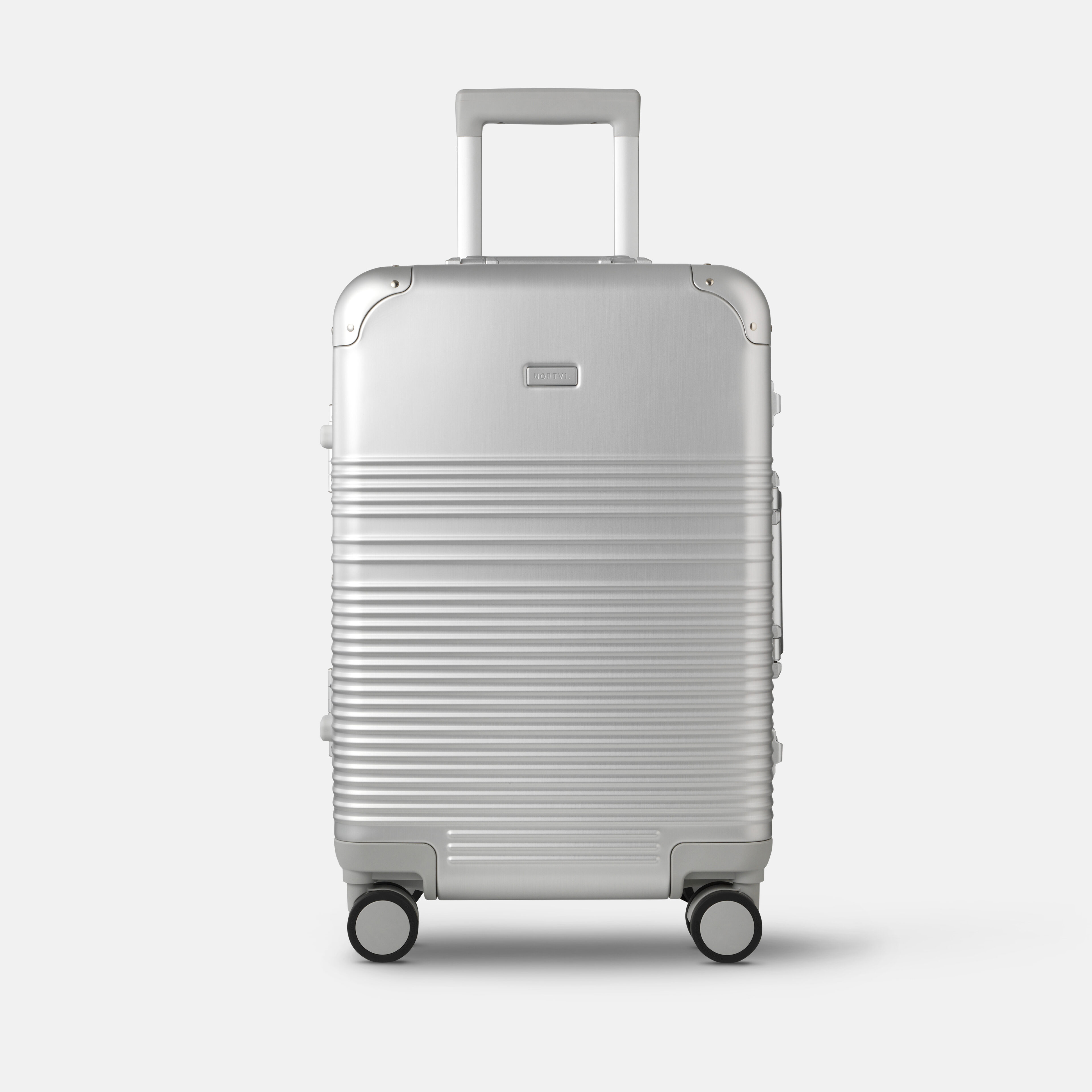 The Aluminium is the ideal suitcase for those who value durability, design, and timeless performance. Its high-grade aluminium shell, finished with our signature NORTVI texture and reinforced corners, offers exceptional impact resistance.Next-generation ball-bearing Silent Wheels deliver a smooth, whisper-quiet glide, while dual integrated TSA-approved latch locks keep your belongings secure. Slow-return retractable handles on both sides allow you to carry the suitcase your way, ensuring every journey is effortless and comfortable.
